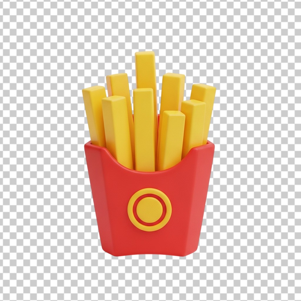 3D Crispy French Fries in Red Paper Box PNG Transparent Background