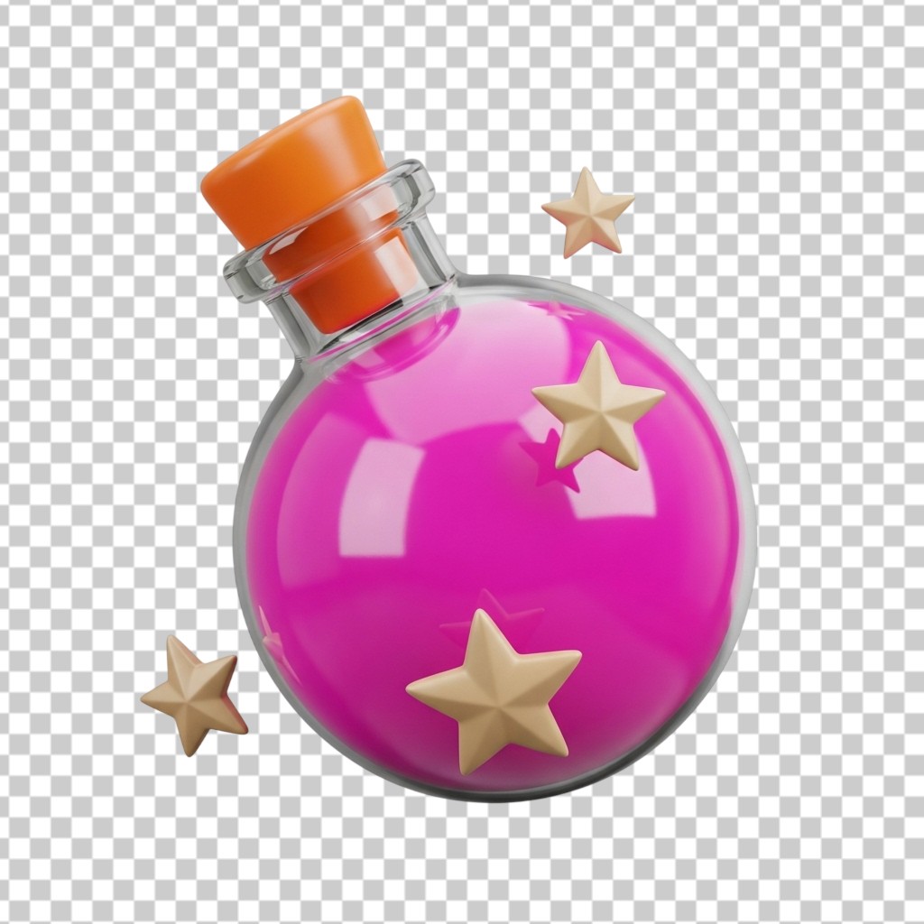 3D Magic Pink Potion Flask with Stars Fantasy Icon PNG Transparent Background