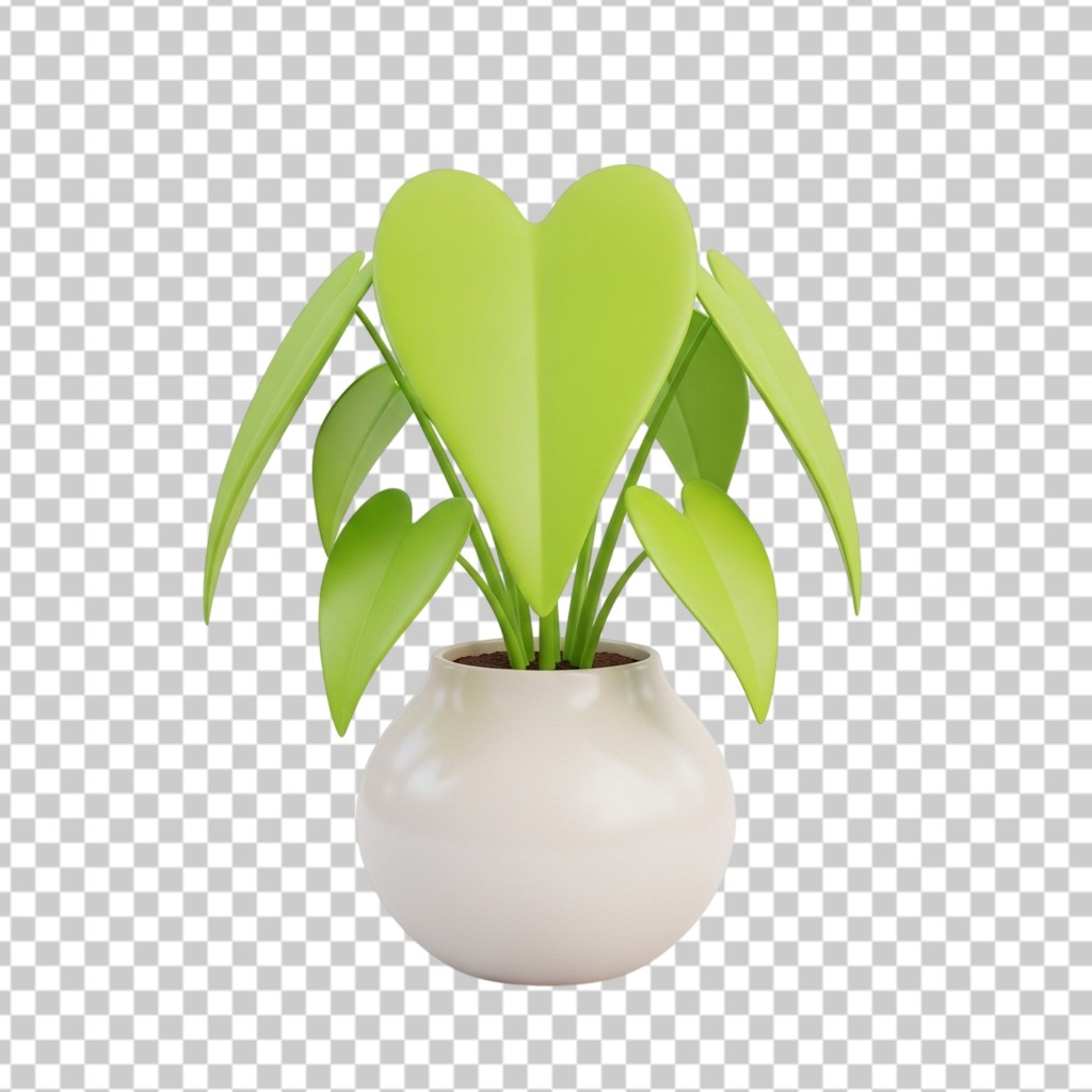 Heart Shaped Leaf Plant in Ceramic Pot 3D Illustration PNG Transparent Background
