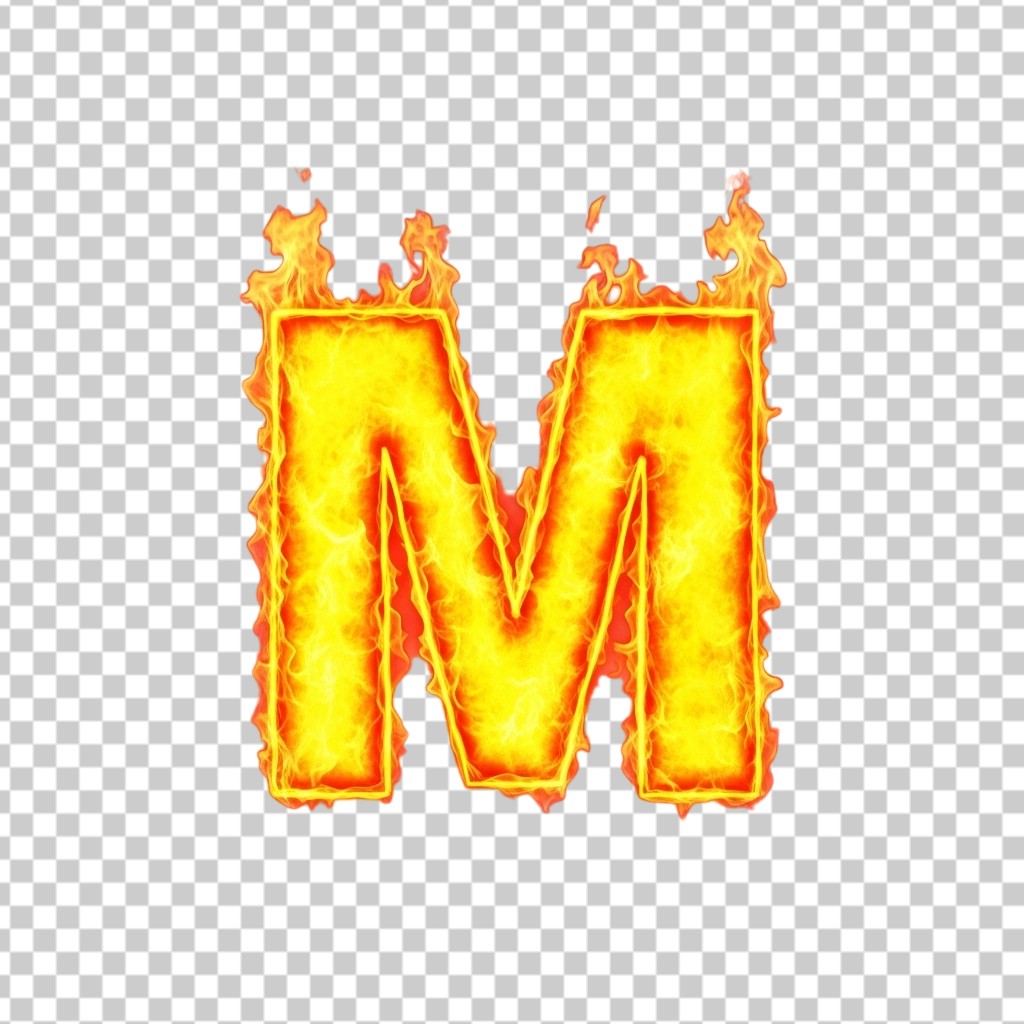 Burning Fire Alphabet Letter M with Orange Flames PNG Transparent Background