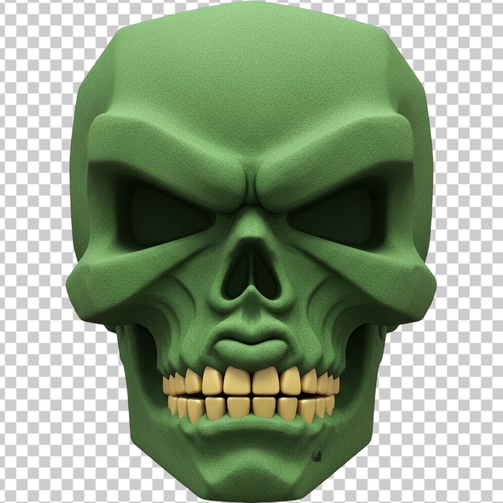 3D Scary Green Monster Skull Mask for Halloween PNG Transparent Background