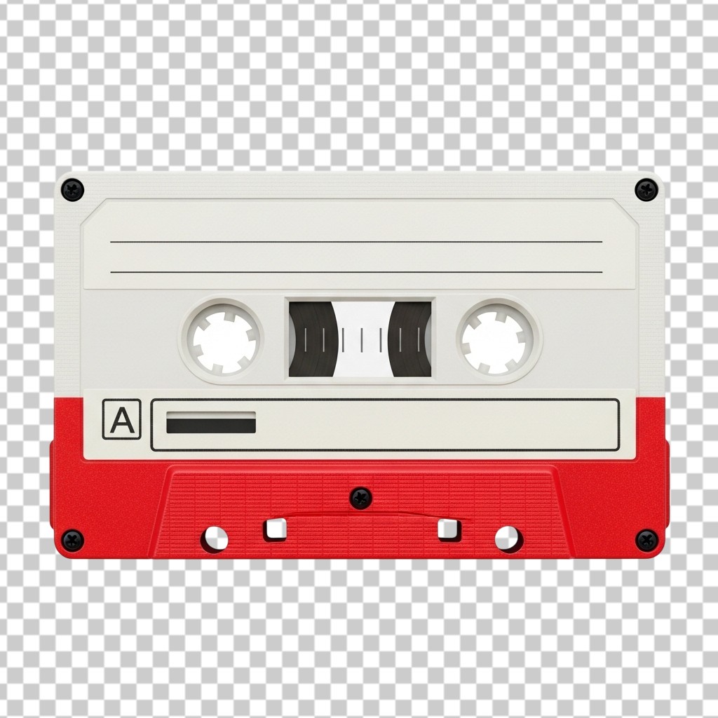 Retro 90s Style Red and White Cassette Tape PNG Transparent Background