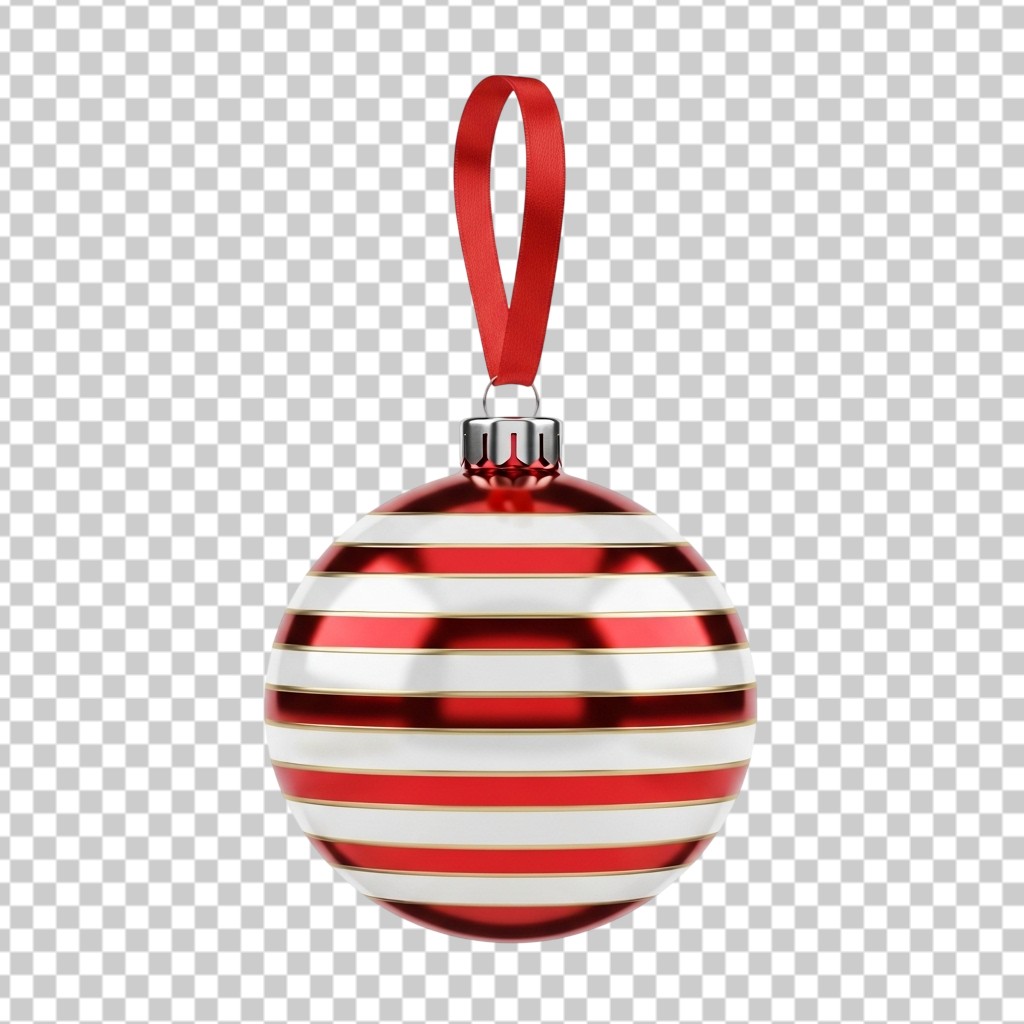 3D Red and White Striped Christmas Bauble Ornament PNG Transparent Background