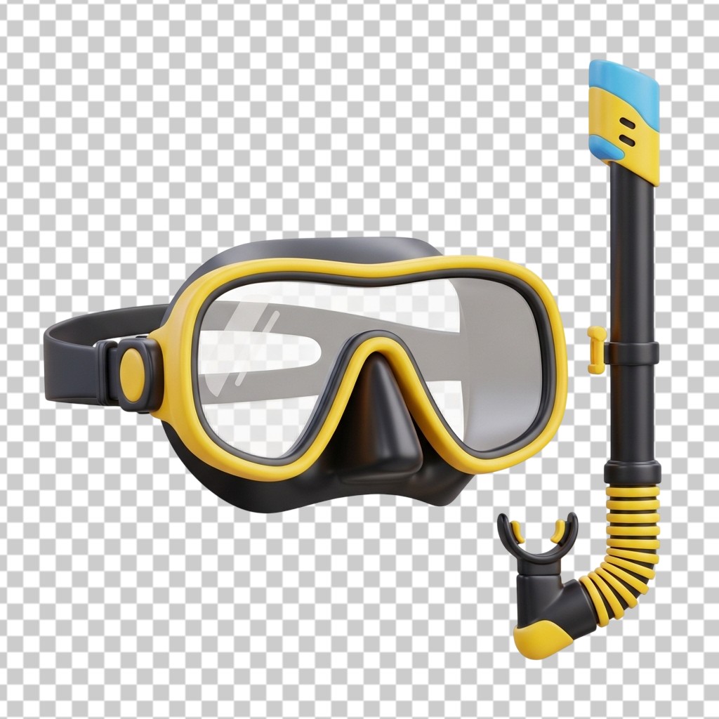 3D Professional Scuba Diving Mask with Snorkel Yellow and Black PNG Transparent Background
