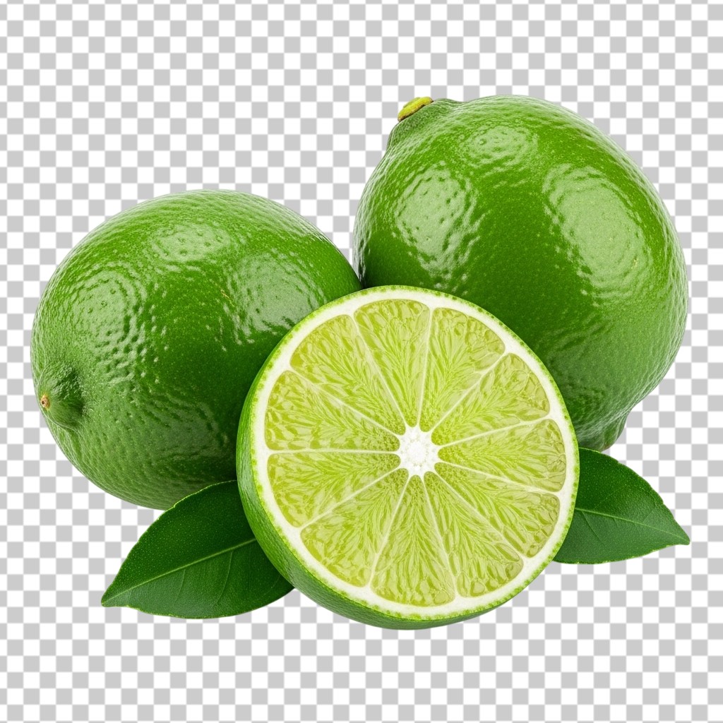 Group of Fresh Green Limes with One Slice PNG Transparent Background