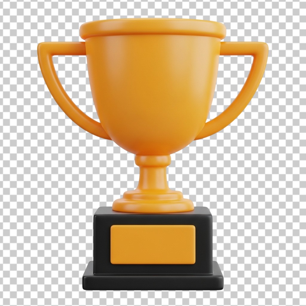 3D Golden Winner Trophy Cup Award for Success PNG Transparent Background