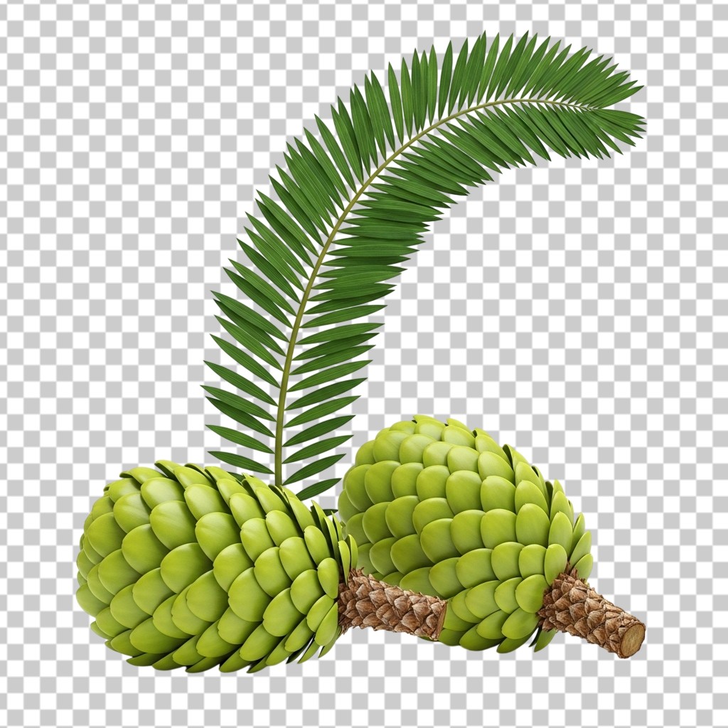 Fresh Green Cycad Palm Seeds with Tropical Leaves Illustration PNG Transparent Background