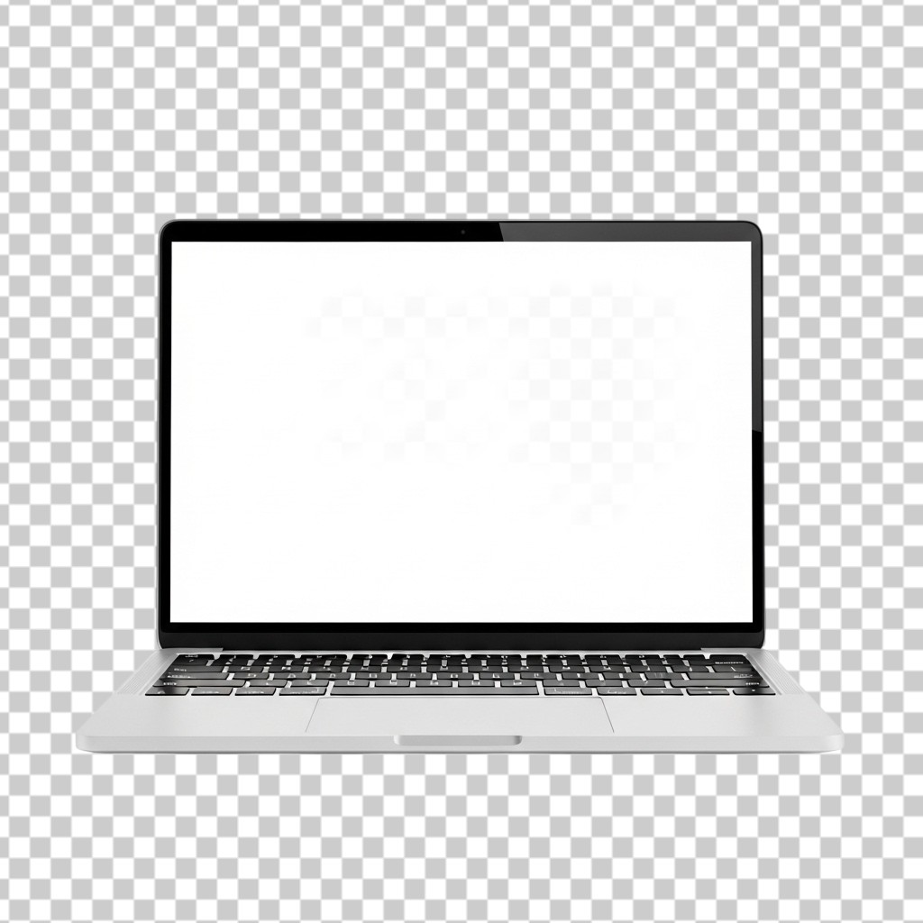 Modern Silver Laptop Computer with Blank Screen PNG Transparent Background