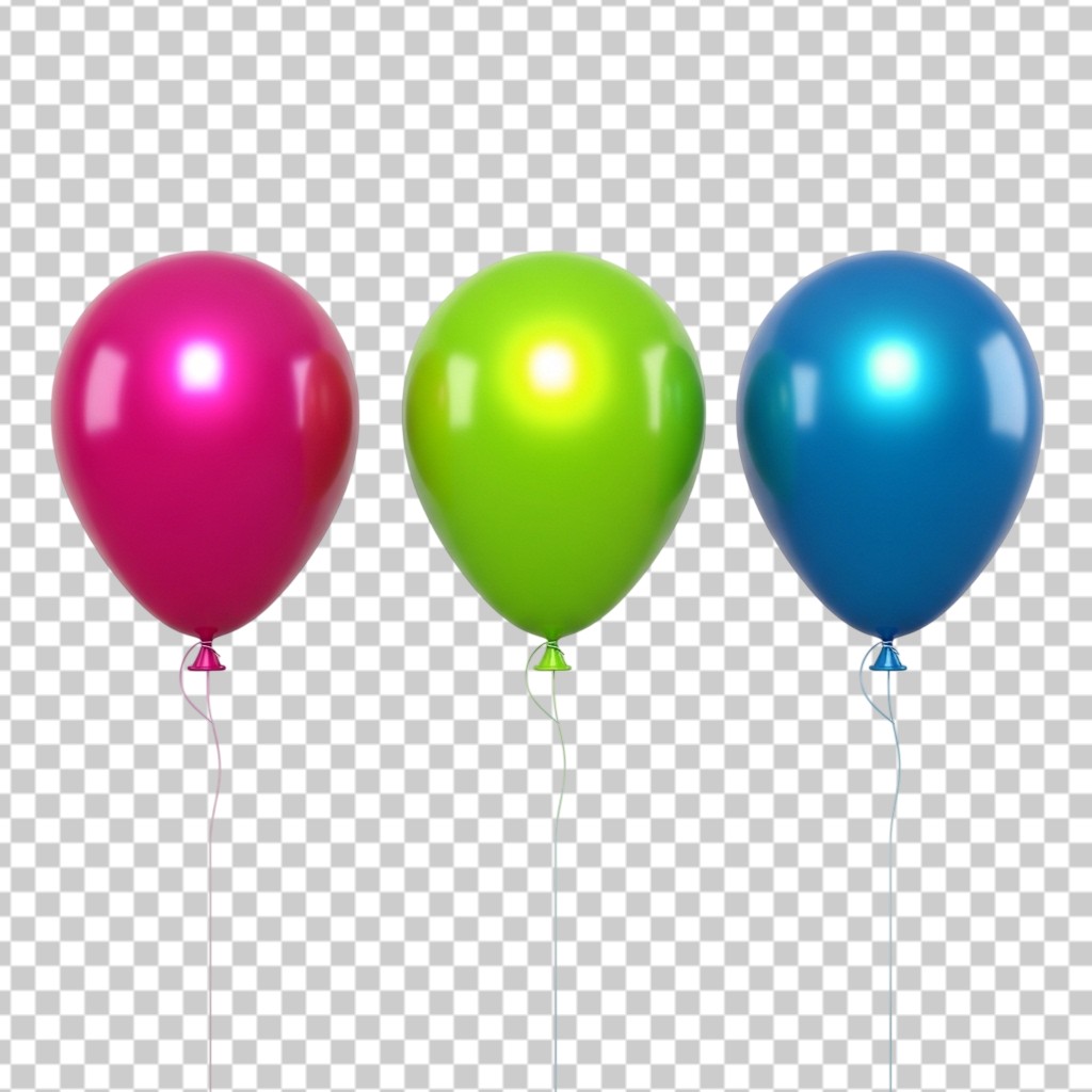 Group of Three Colorful Shiny Pink Green and Blue Celebration Balloons PNG Transparent Background