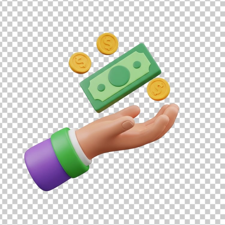3D Tropical Palm Tree on a Small Grassy Island PNG Transparent Background