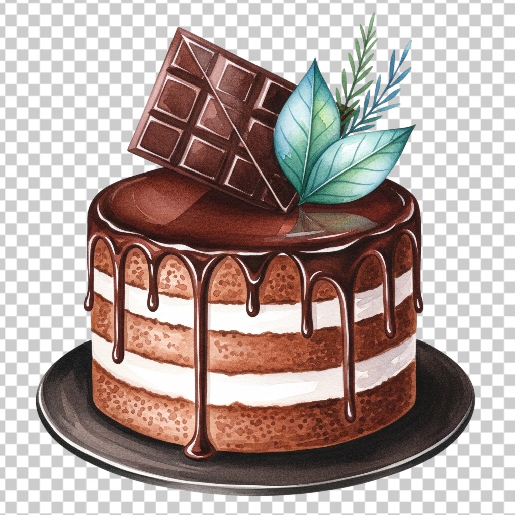 Delicious Chocolate Layer Cake with Glaze and Mint PNG Transparent Background