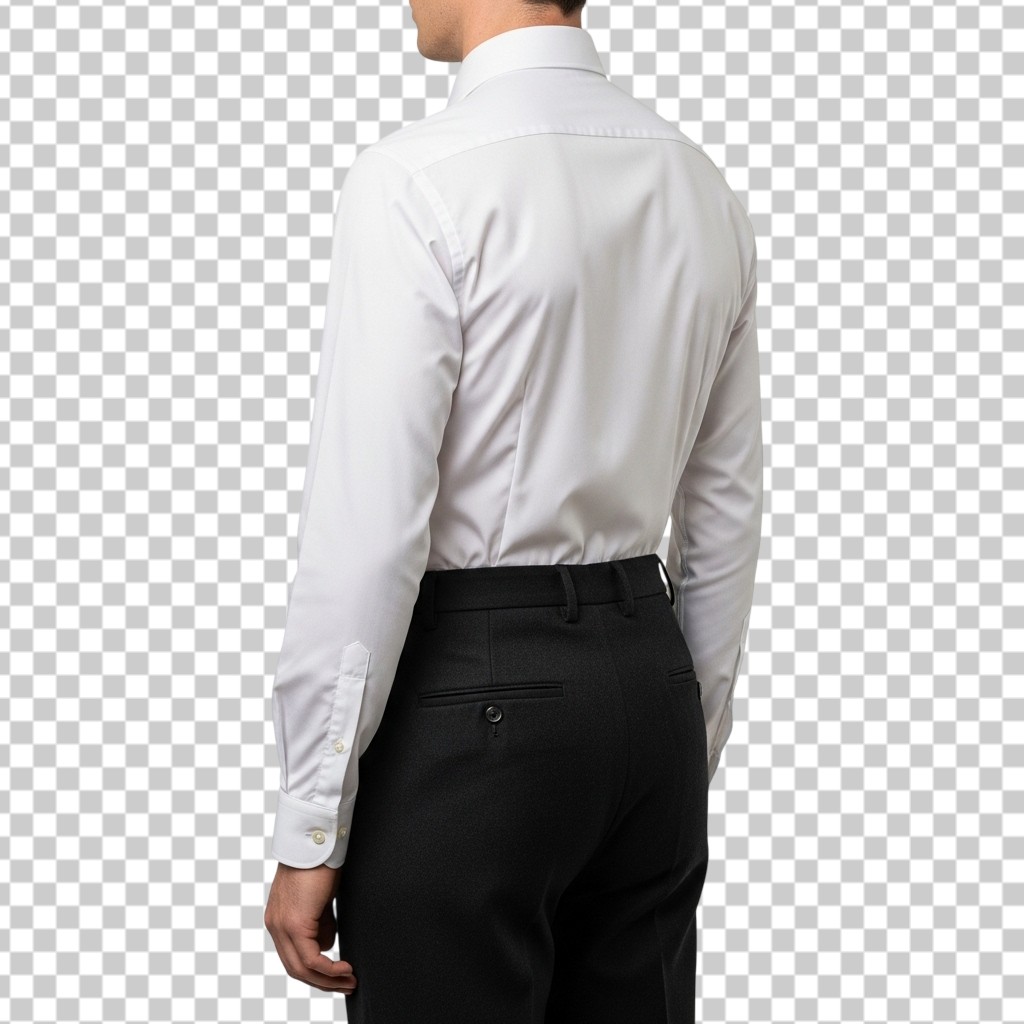 Back View of Man Wearing Formal White Dress Shirt and Black Trousers PNG Transparent Background