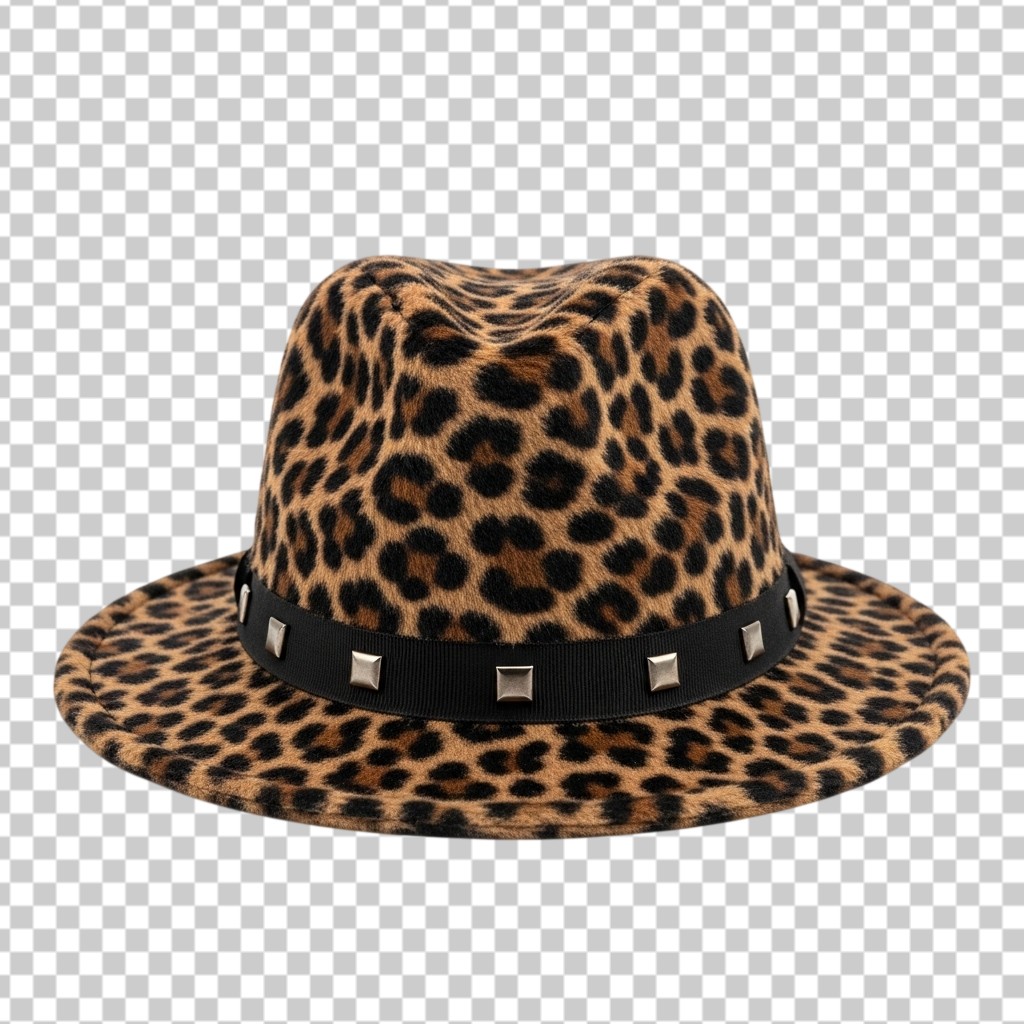 Fashionable Leopard Print Fedora Hat for Summer PNG Transparent Background