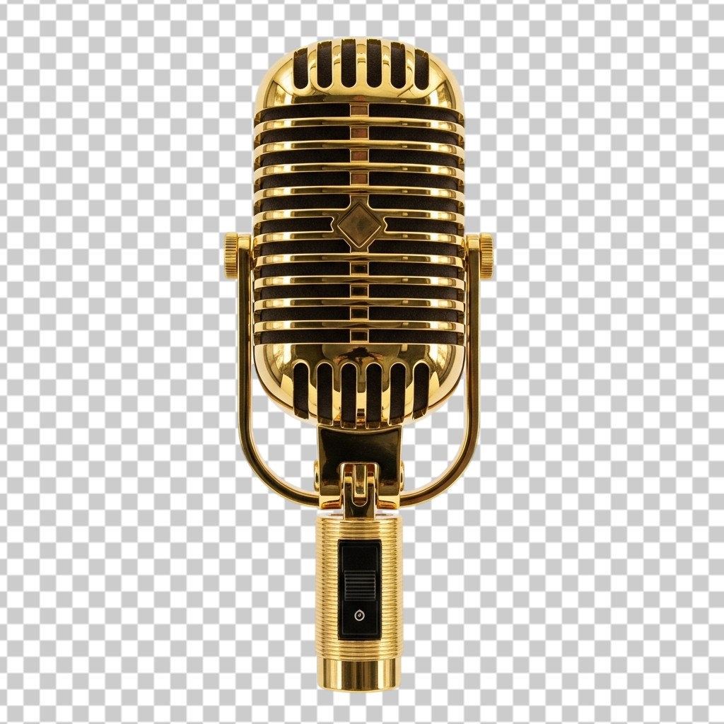 Vintage Gold Metallic Studio Microphone Illustration PNG Transparent Background