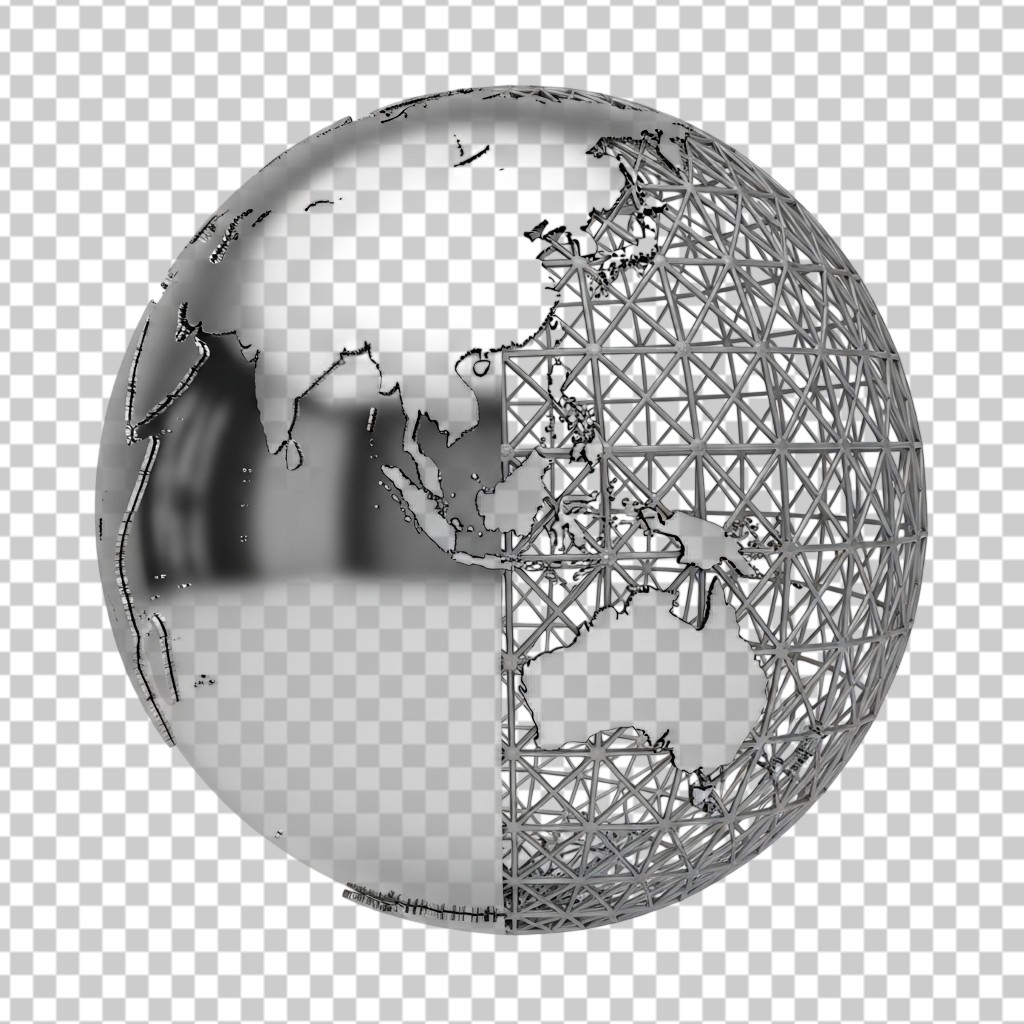 Metallic Silver Wireframe Global Earth Sphere PNG Transparent Background