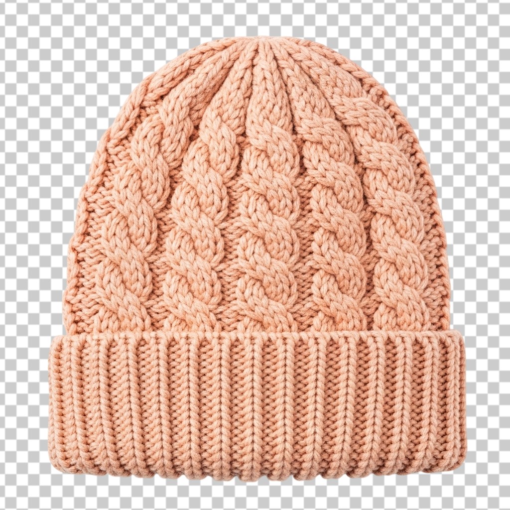 Warm Pink Cable Knit Winter Beanie Hat PNG Transparent Background