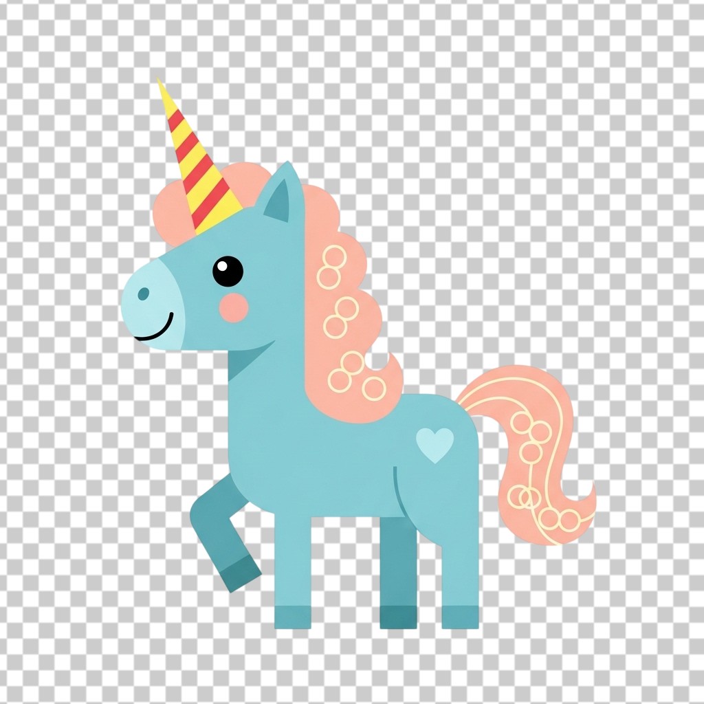 Cute Cartoon Blue Unicorn Character with Pink Mane PNG Transparent Background