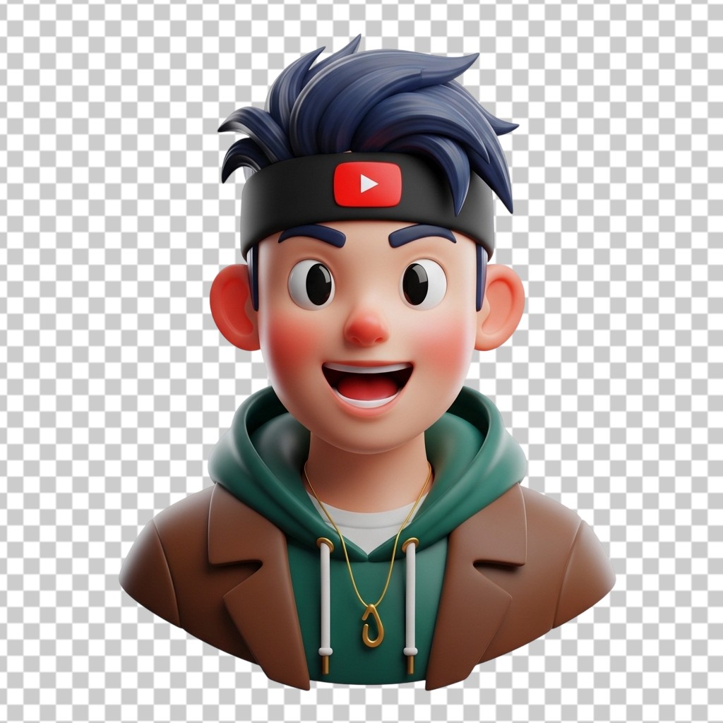 3D Male YouTuber Avatar Character with Bandana PNG Transparent Background