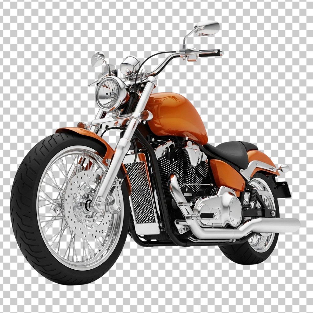 Powerful Orange Cruiser Motorcycle Isolated PNG Transparent Background
