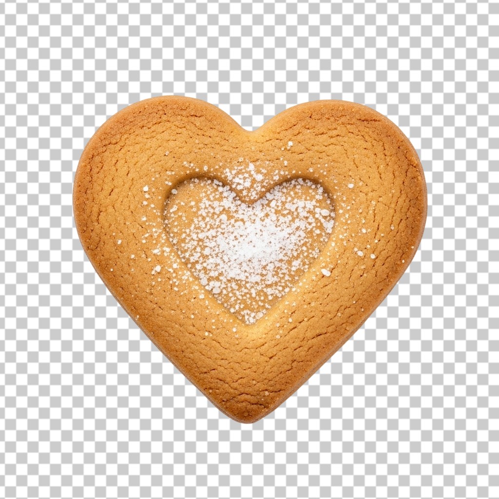 Heart Shaped Sugar Cookie with Powdered Sugar PNG Transparent Background