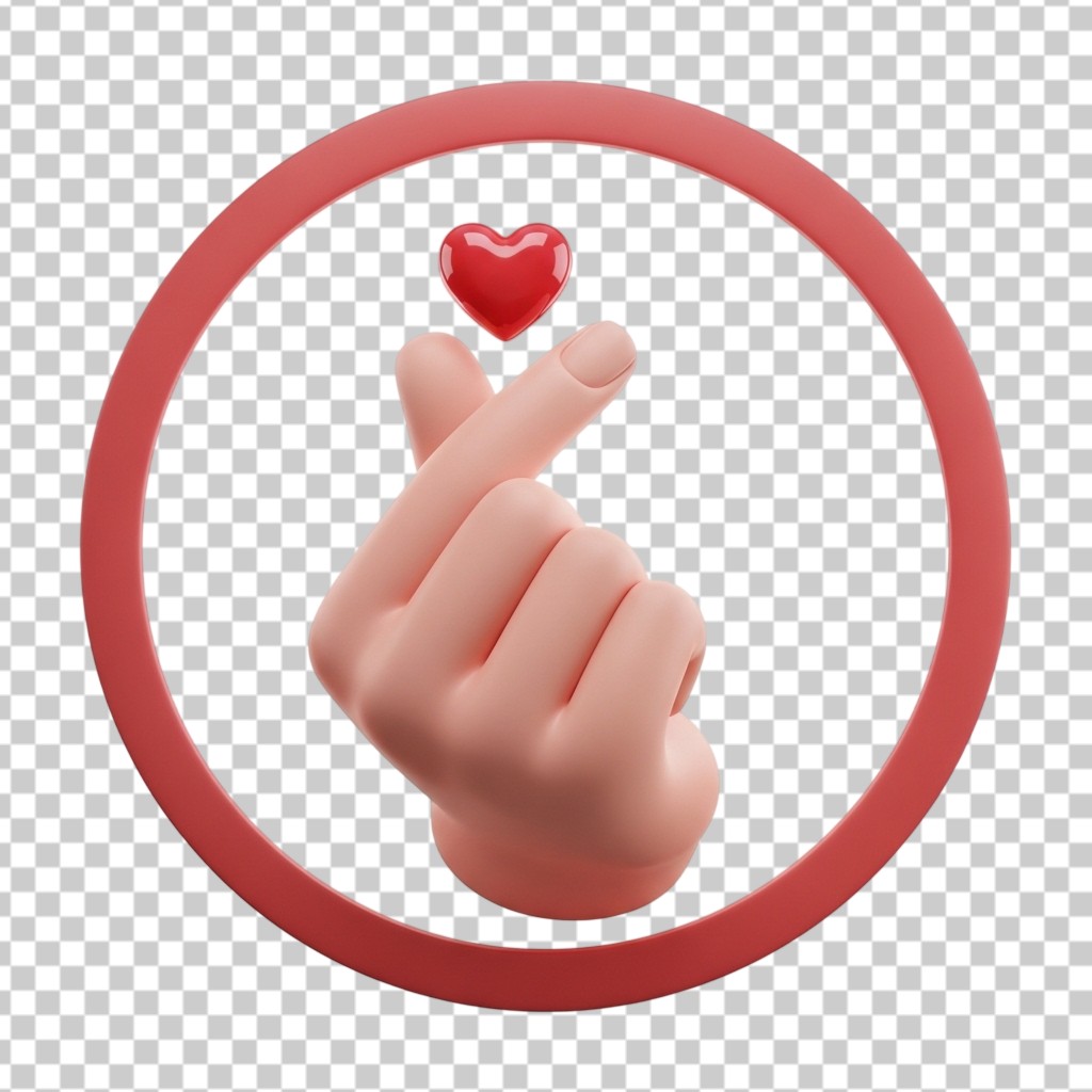 3D Hand Sign Finger Heart Love Gesture in Circular Frame PNG Transparent Background