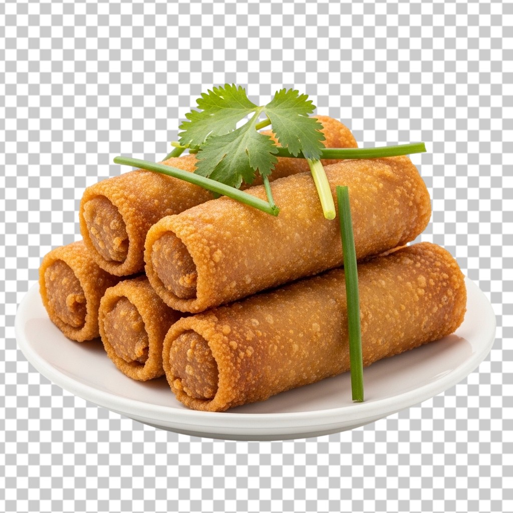 Crispy Fried Spring Rolls on a Plate PNG Transparent Background