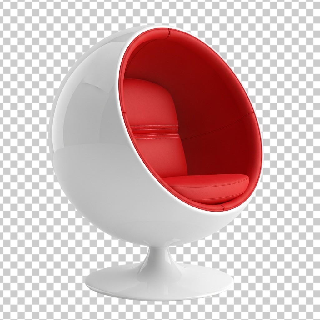 Modern 3D White and Red Round Ball Chair PNG Transparent Background