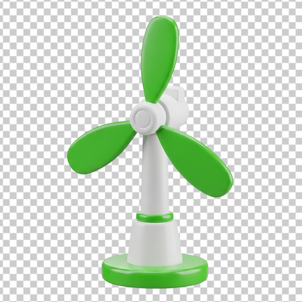 Green and White Wind Turbine Renewable Energy 3D PNG Transparent Background
