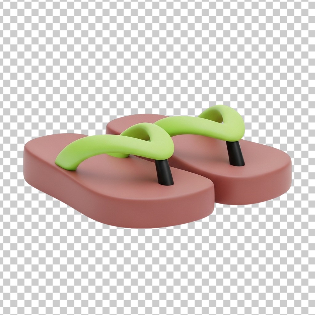 Pair of Pink and Green Flip Flop Sandals 3D PNG Transparent Background