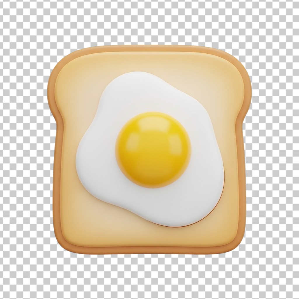 Single Slice of Bread with Fried Egg 3D Breakfast PNG Transparent Background