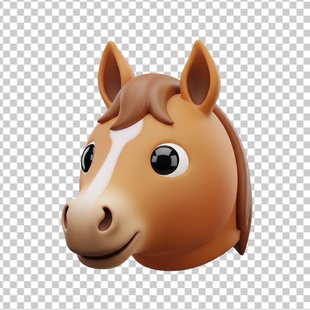 3D Cute Brown Horse Head Animal Character PNG Transparent Background