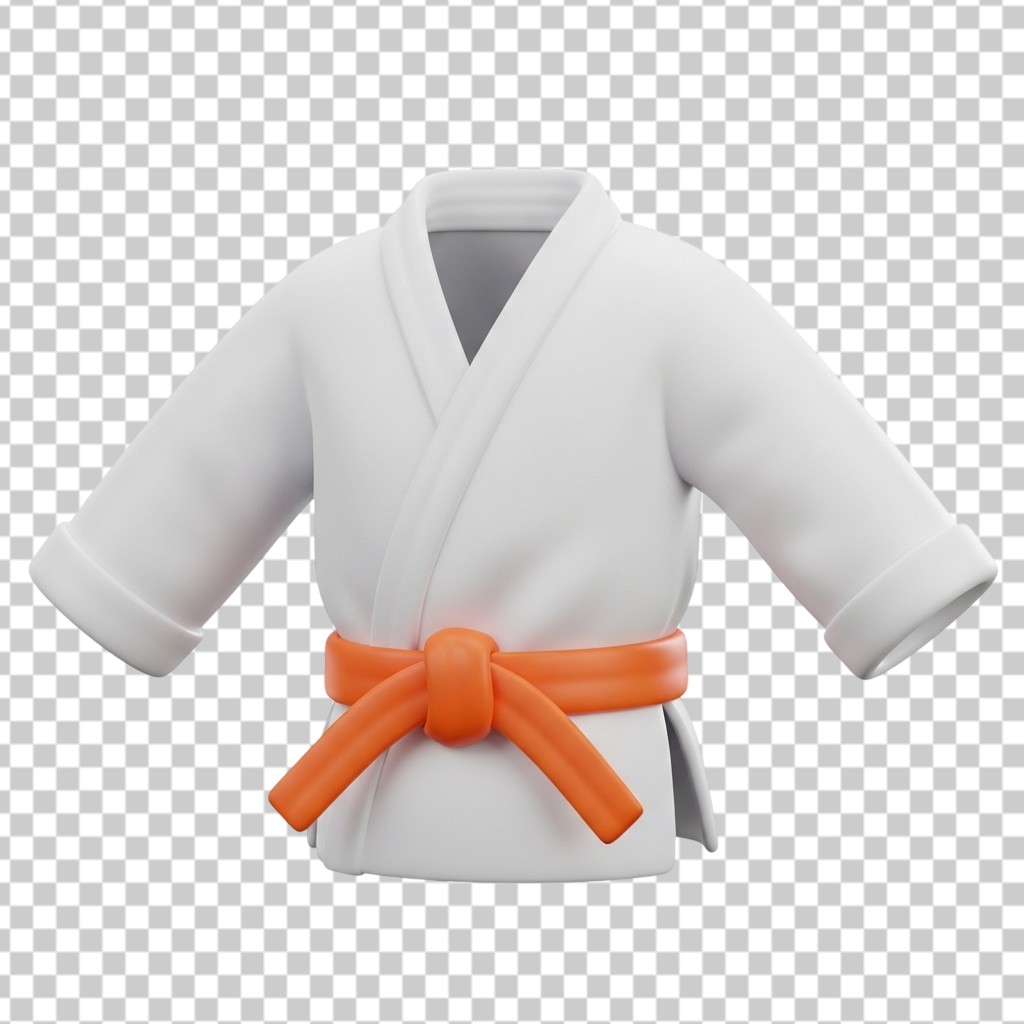 White Martial Arts Uniform Gi with Orange Belt for Karate PNG Transparent Background