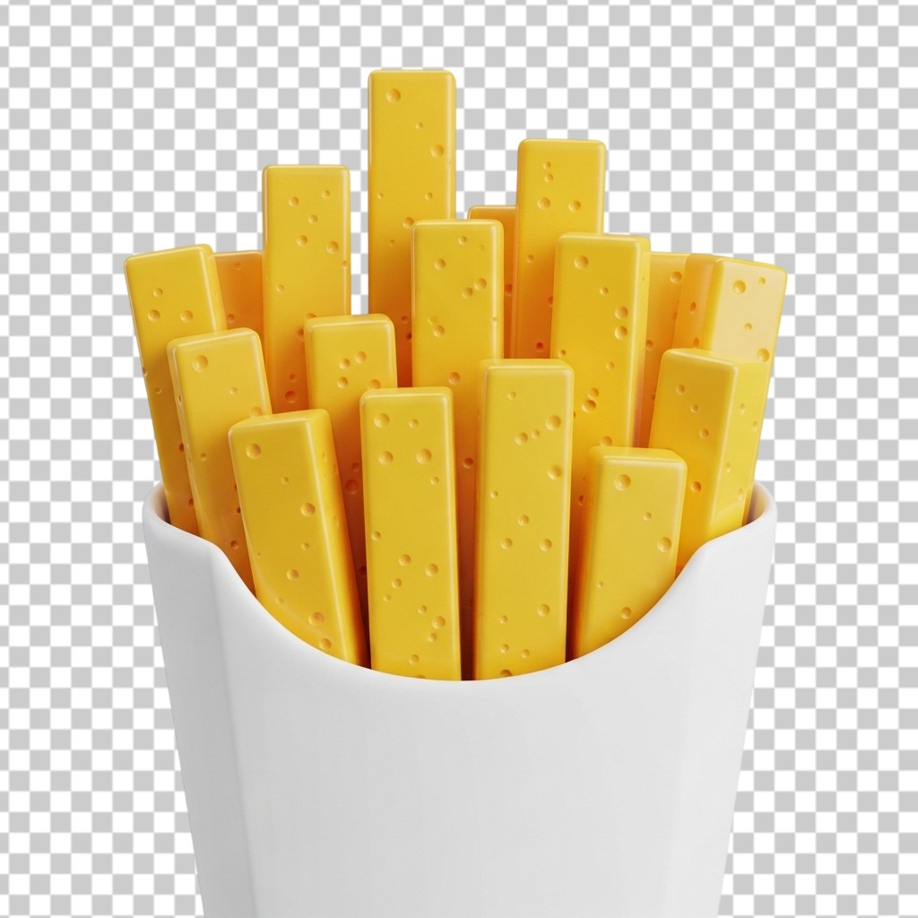 3D Crispy French Fries in White Paper Box Fast Food PNG Transparent Background
