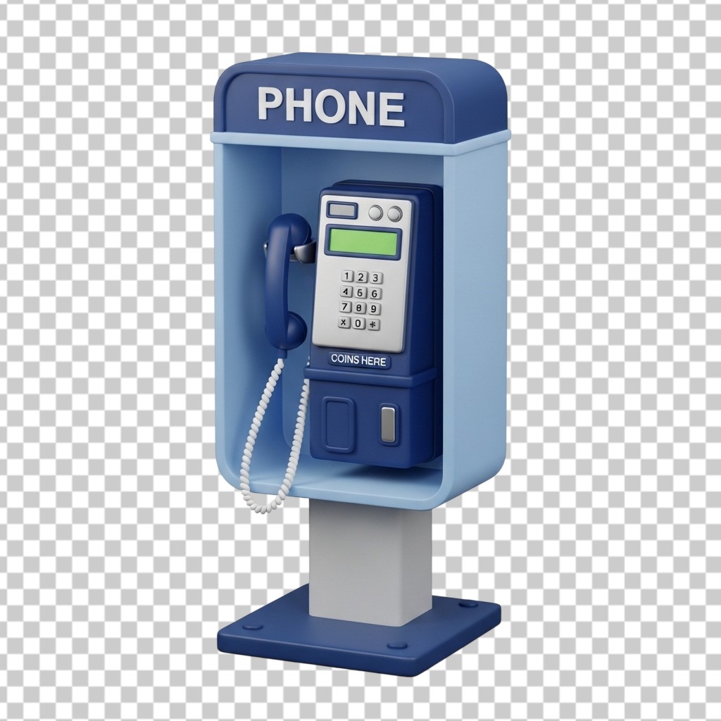 3D Blue Public Payphone Booth PNG Transparent Background