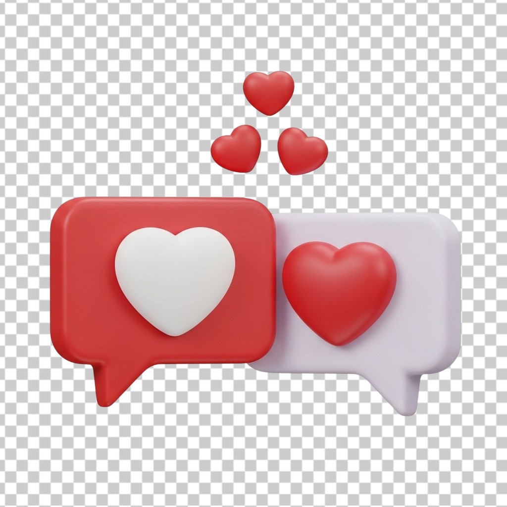 3D Like and Heart Notification Speech Bubbles for Social Media PNG Transparent Background