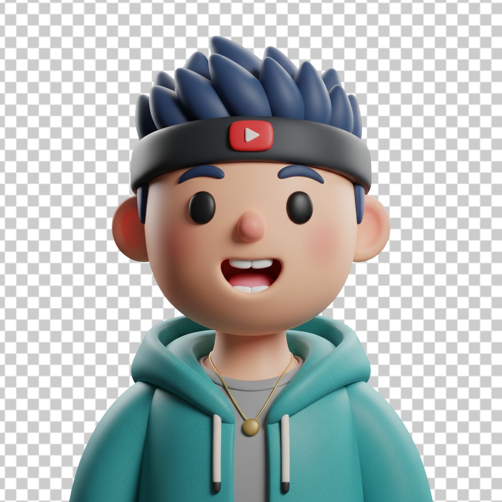 3D Cool Boy Avatar in Blue Hoodie with Headband PNG Transparent Background