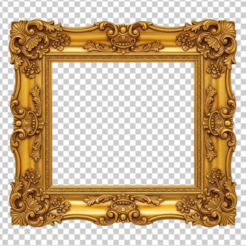 Rectangular Ornate Carved Golden Picture Frame PNG Transparent Background
