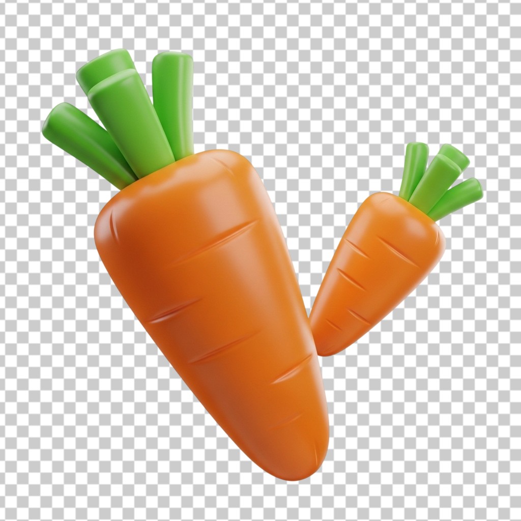 Pair of Fresh Orange Carrots with Green Tops 3D Vegetable PNG Transparent Background