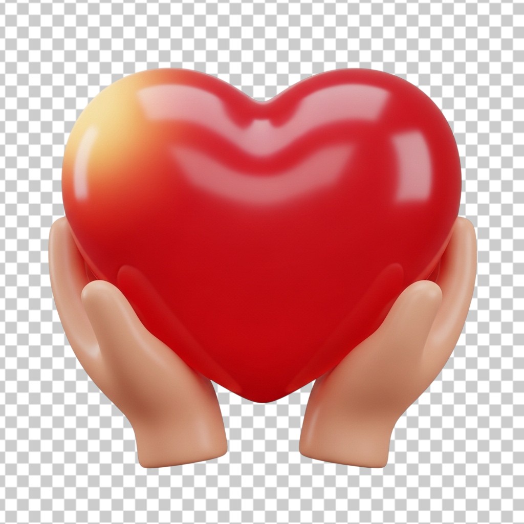 3D Hands Holding Large Red Heart Illustration PNG Transparent Background