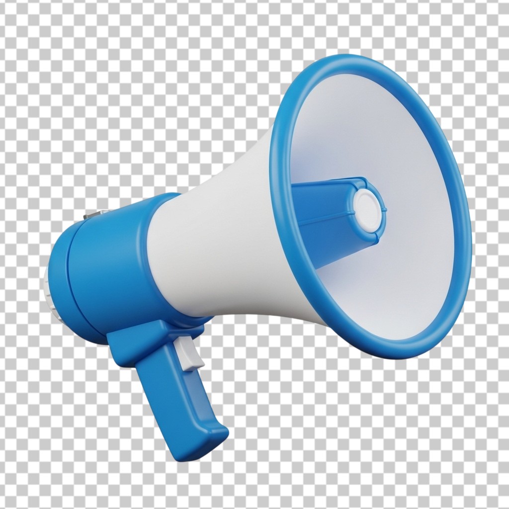 3D Blue and White Megaphone Speaker PNG Transparent Background
