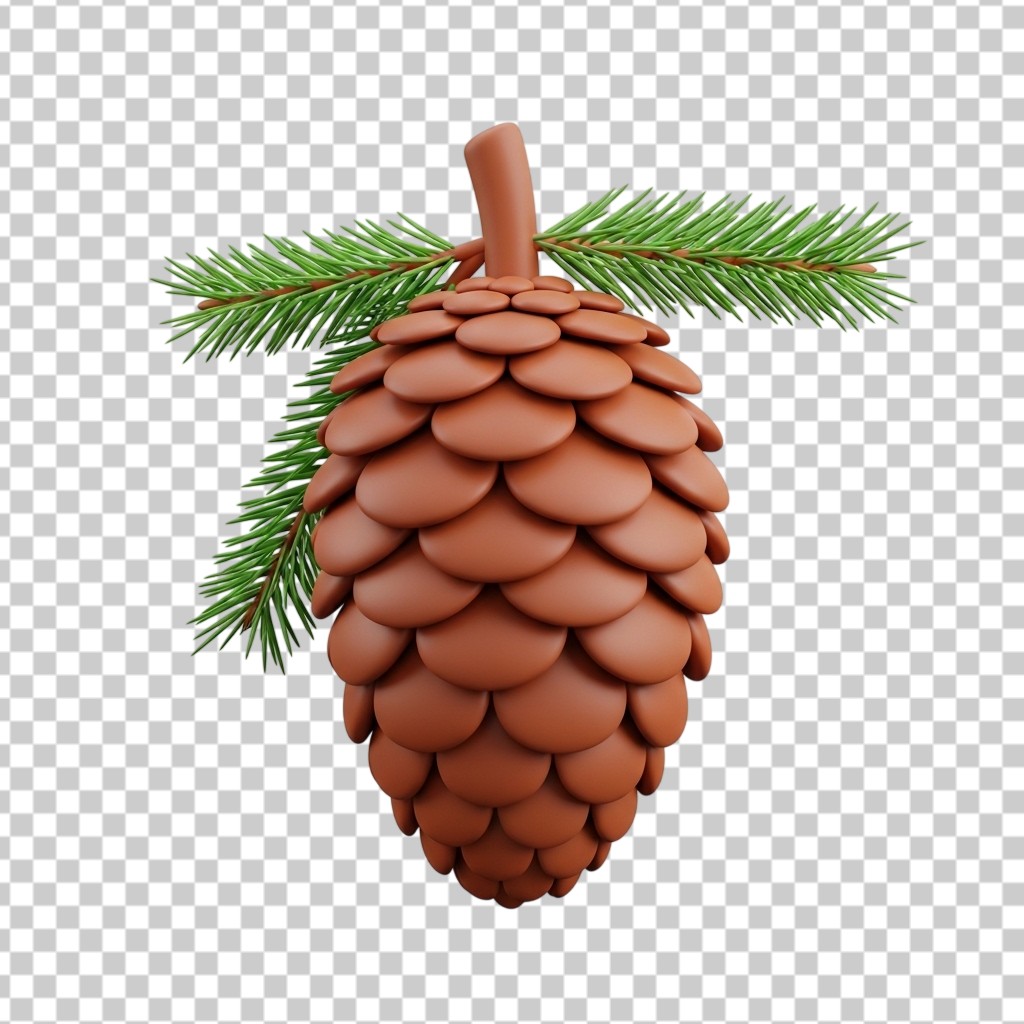 3D Brown Pine Cone with Green Branches PNG Transparent Background