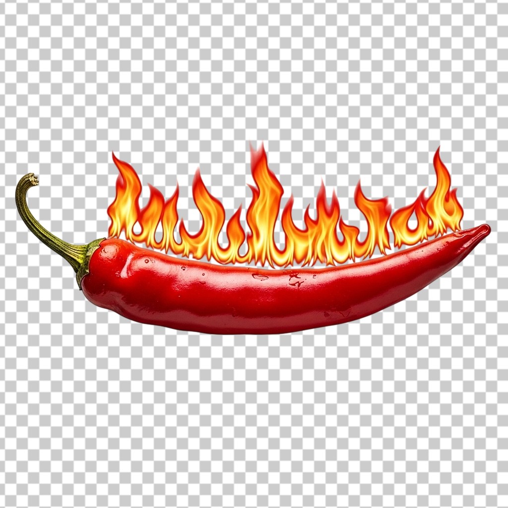 Spicy Hot Red Chili Pepper Engulfed in Realistic Orange Flames PNG Transparent Background50