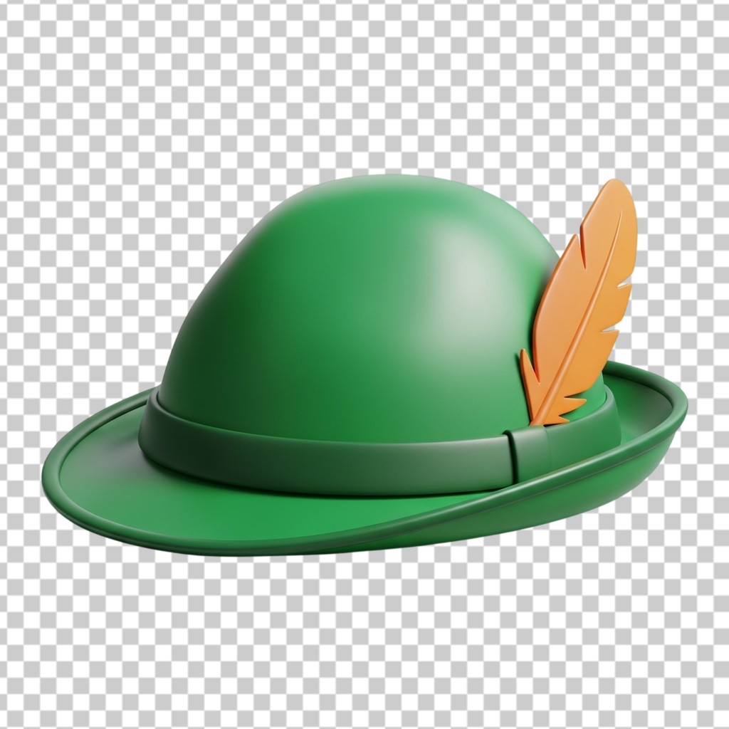 3D Green Hunter Hat with Feather Illustration PNG Transparent Background