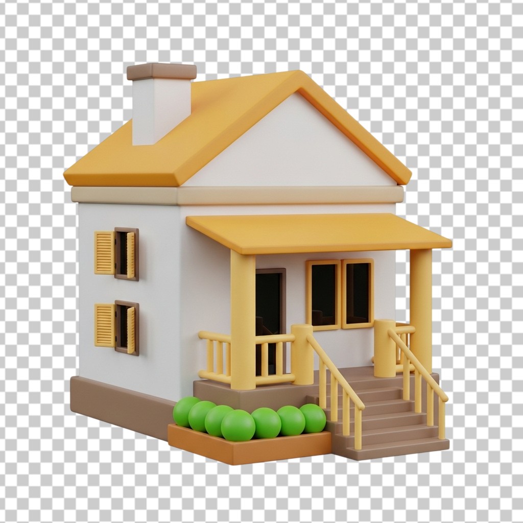 3D Suburban Family House Architecture Illustration PNG Transparent Background
