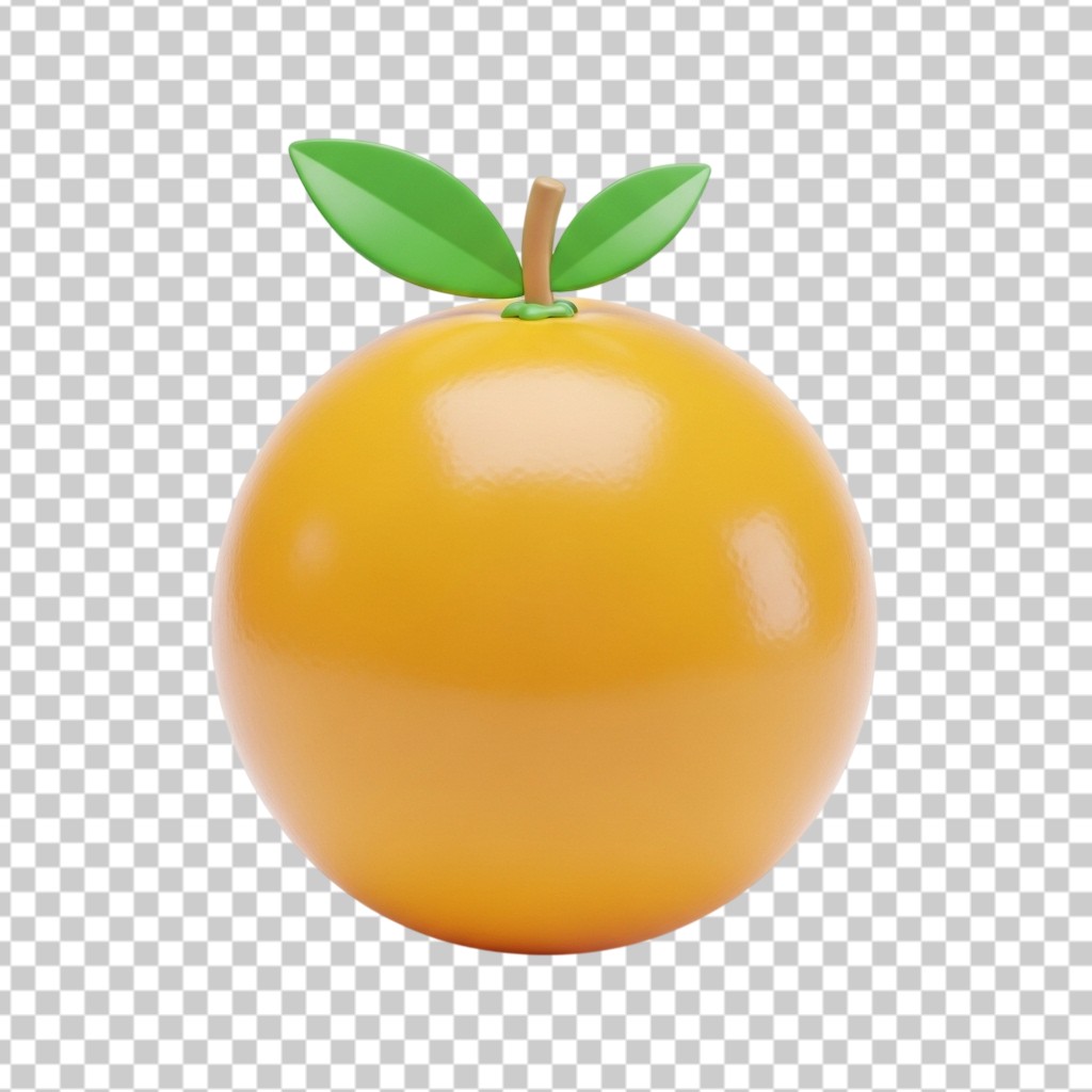 3D Ripe Orange Fruit with Green Leaves Illustration PNG Transparent Background