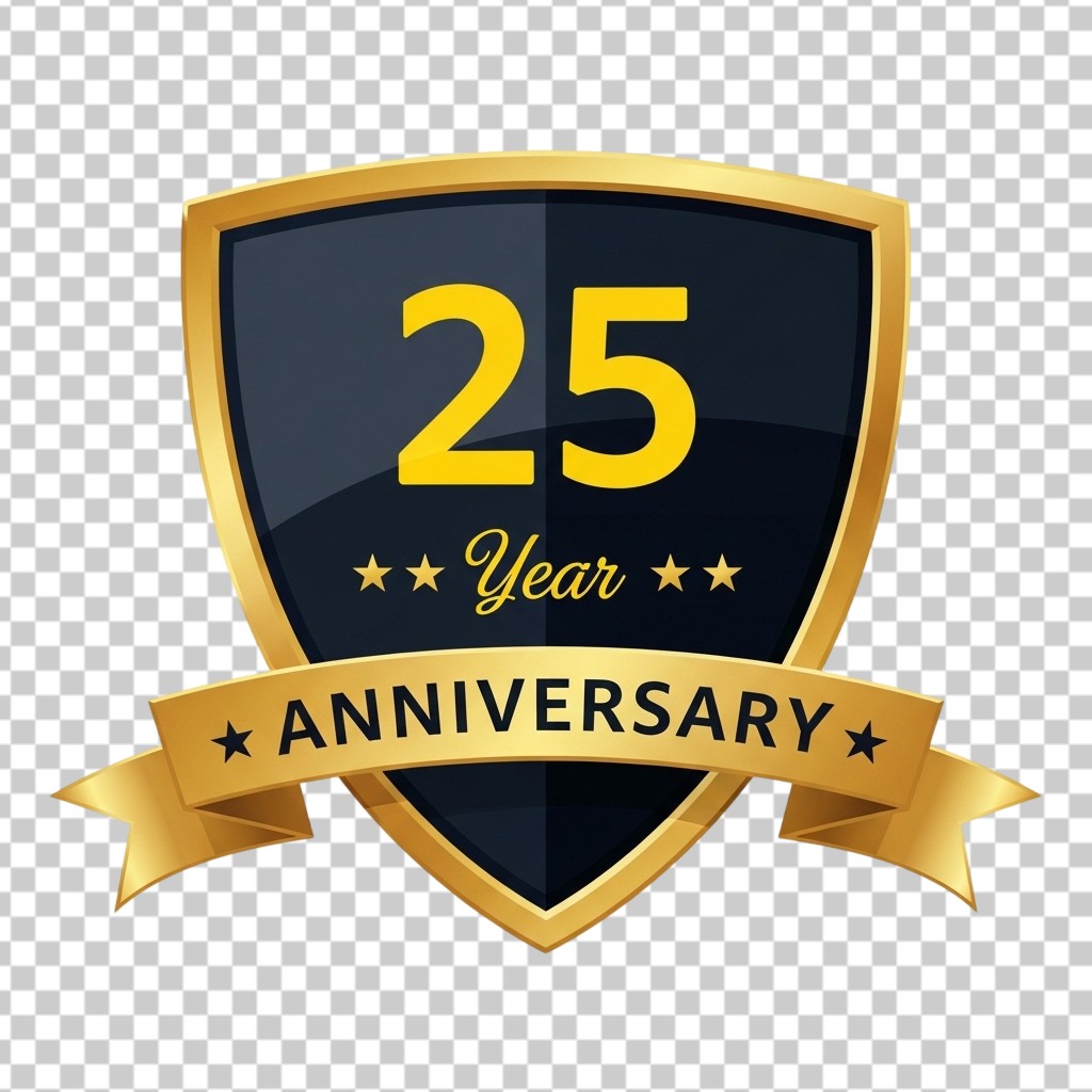 Golden 25th Anniversary Celebration Shield Badge PNG Transparent Background