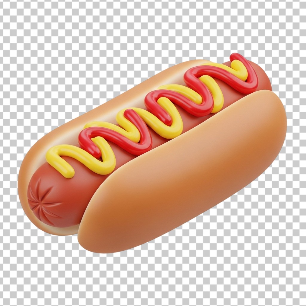 3D Classic Hotdog with Mustard Sauce on Bun PNG Transparent Background