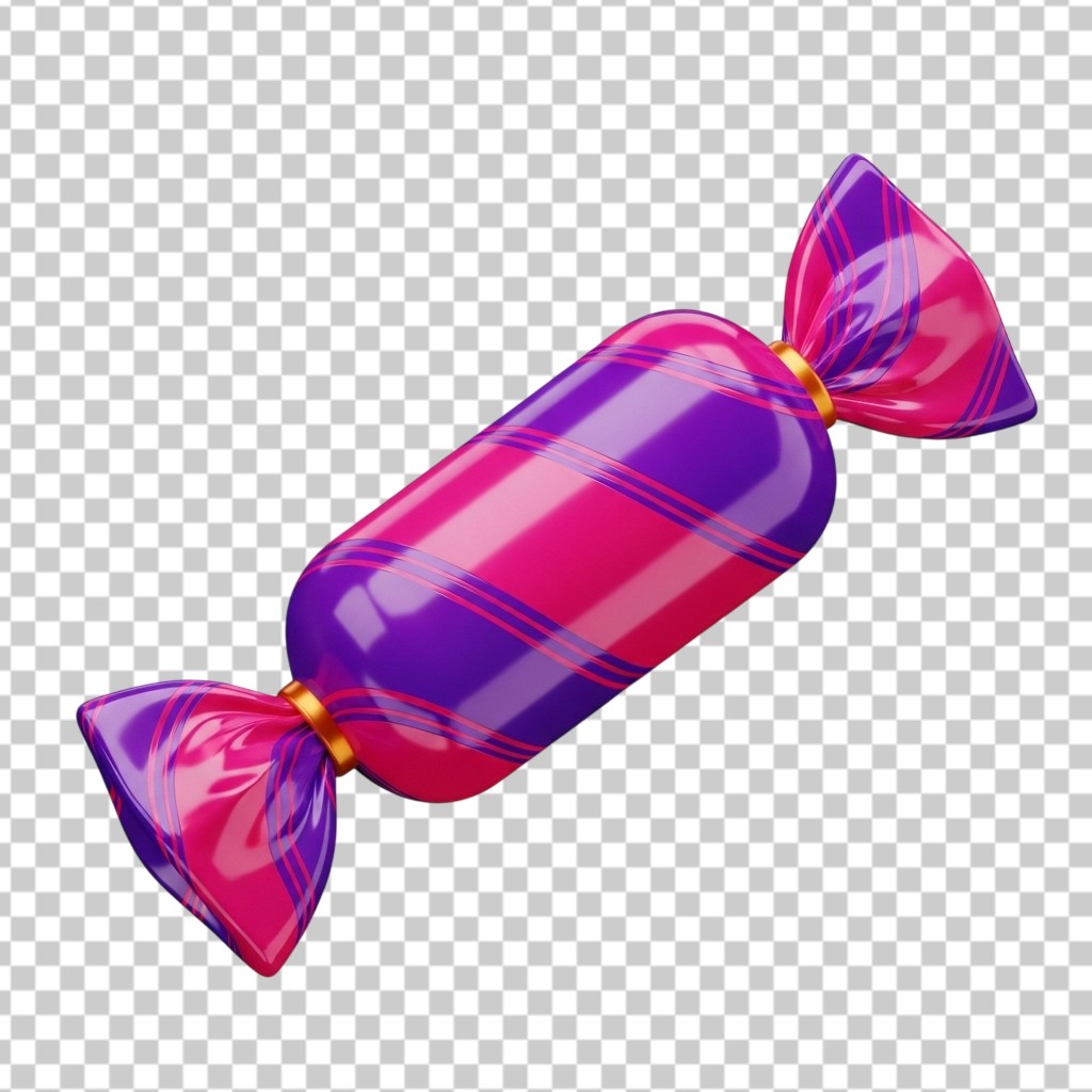 3D Wrapped Purple Candy Sweet Food Illustration PNG Transparent Background