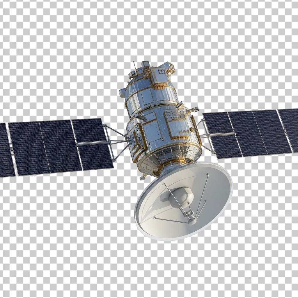 3D Realistic Space Satellite with Solar Panels PNG Transparent Background