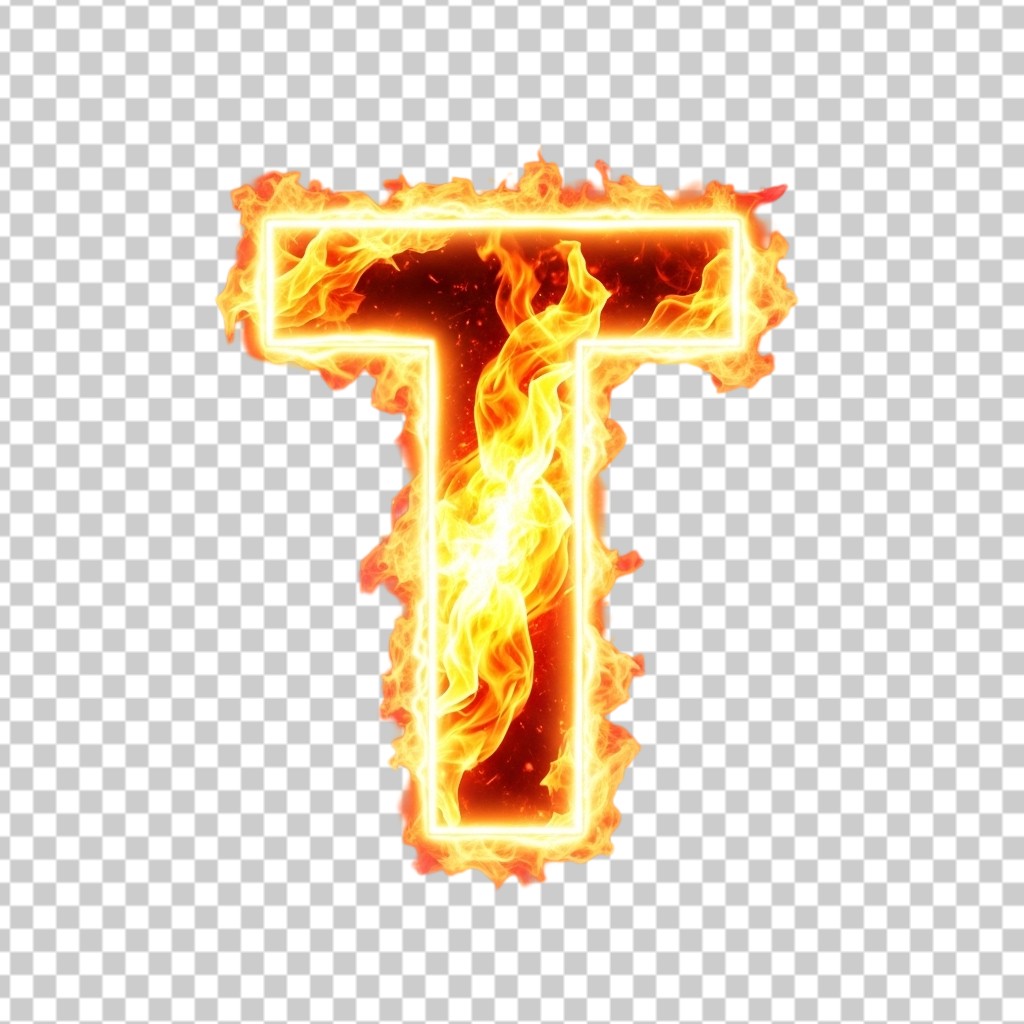 Burning Fire Letter T Alphabet Design PNG Transparent Background